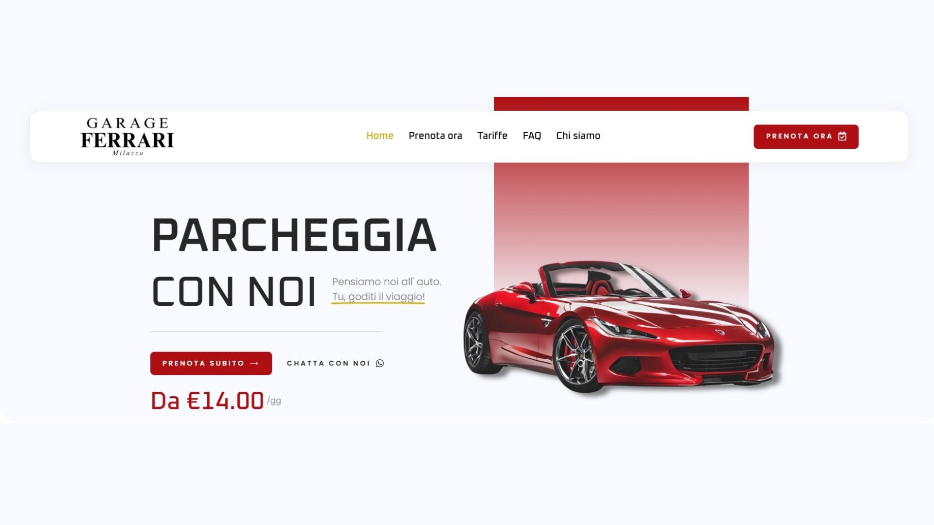 Il sito di Garage Ferrari Milazzo oggi è uno strumento completo di visibilità e conversione, che offre a chiunque la possibilità di prenotare in pochi clic, con disponibilità aggiornate in tempo reale.